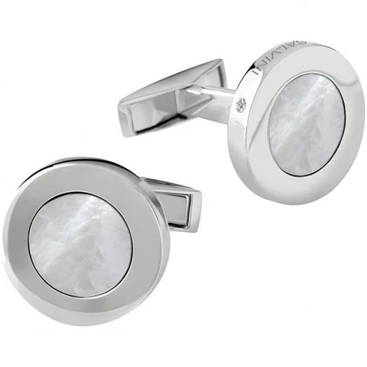 Carisma, fascino e sicurezza. L’essenza dello stile metropolitano si plasma in creazioni ricche di carattere. Gemelli in argento con diamanti e madreperla, dallo stile elegante ma adatto ad ogni occasione.